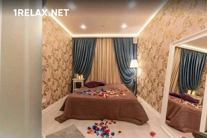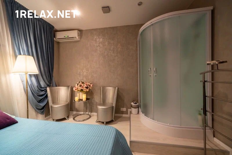 Массажный салон находится на квартире, к услугам гостей четыре уютных комнаты. Стильный интерьер не только создает настроение, но и позволяет чувствовать себя спокойно и расслабленно, как дома. Сеансы проходят на больших удобных кроватях, для водных процедур есть душ.